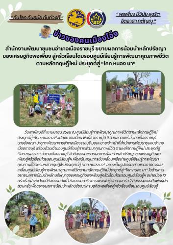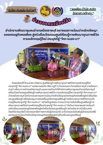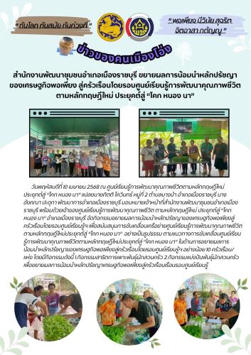 สำนักงานพัฒนาชุมชนอำเภอเมืองราชบุรี ขยายผลการน้อมนำหลักปรัชญาของเศรษฐกิจพอเพียง สู่ครัวเรือนโดยรอบศูนย์เรียนรู้การพัฒนาคุณภาพชีวิตตามหลักทฤษฎีใหม่ ประยุคต์สู่ “โคก หนอง นา”